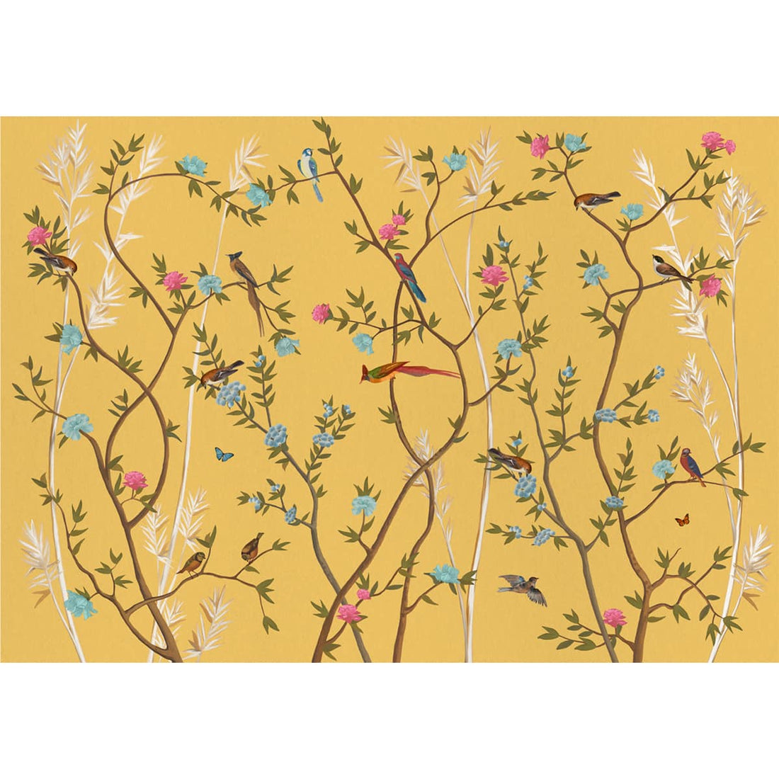 Yellow Chinoiserie Wallpaper With Flowers And Birds, Customised